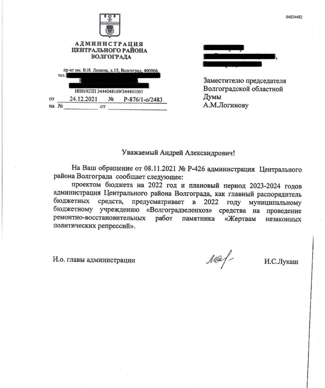 Именно поэтому депутат от ЛДПР Алексей Логинов не остался в стороне, он направил депутатский запрос в администрацию Центрального района Волгограда с просьбой восстановления памятника. Обращение рассмотрели и сообщили, что бюджетные средства на восстановление памятника будут выделены в этом году.