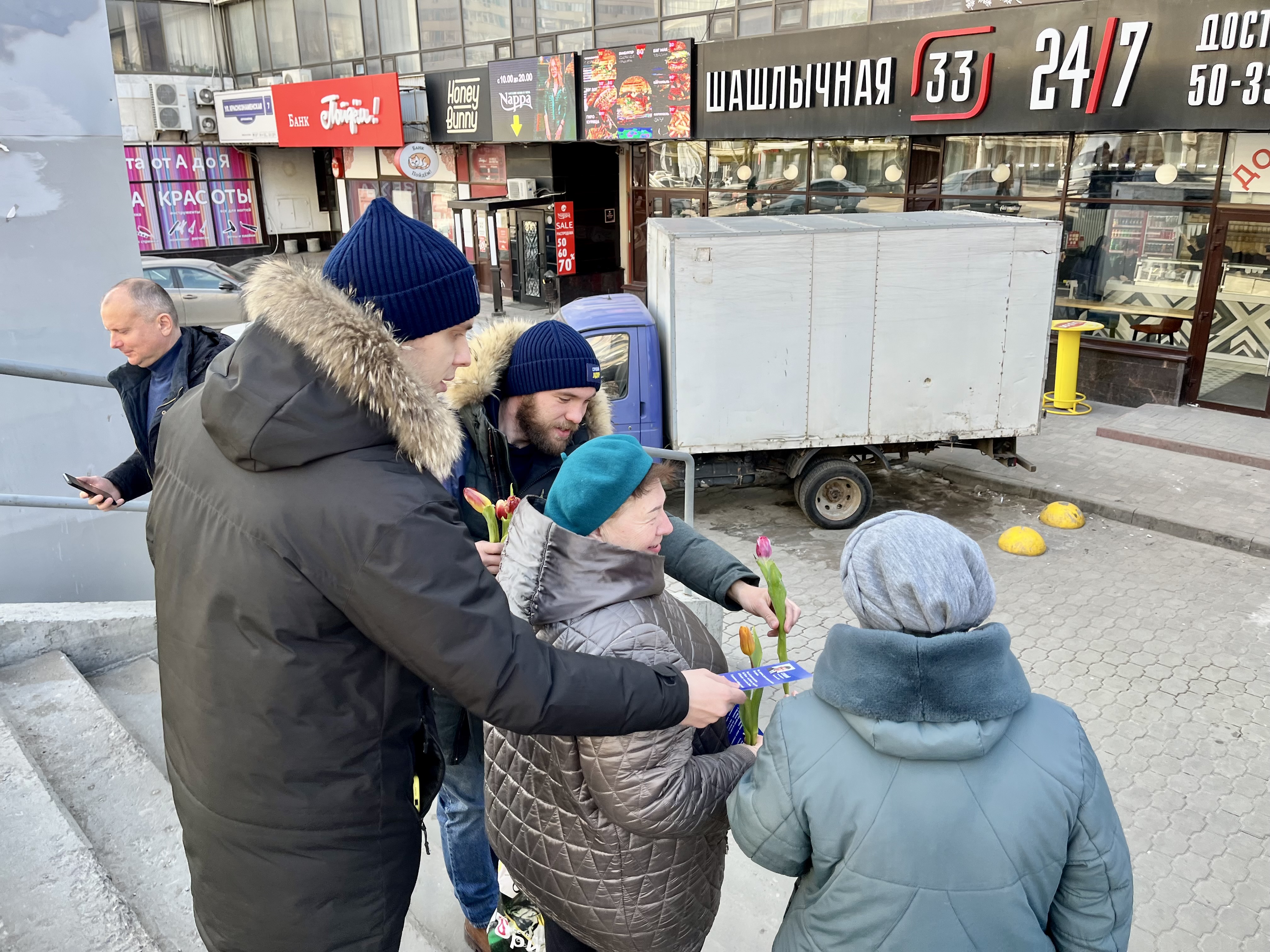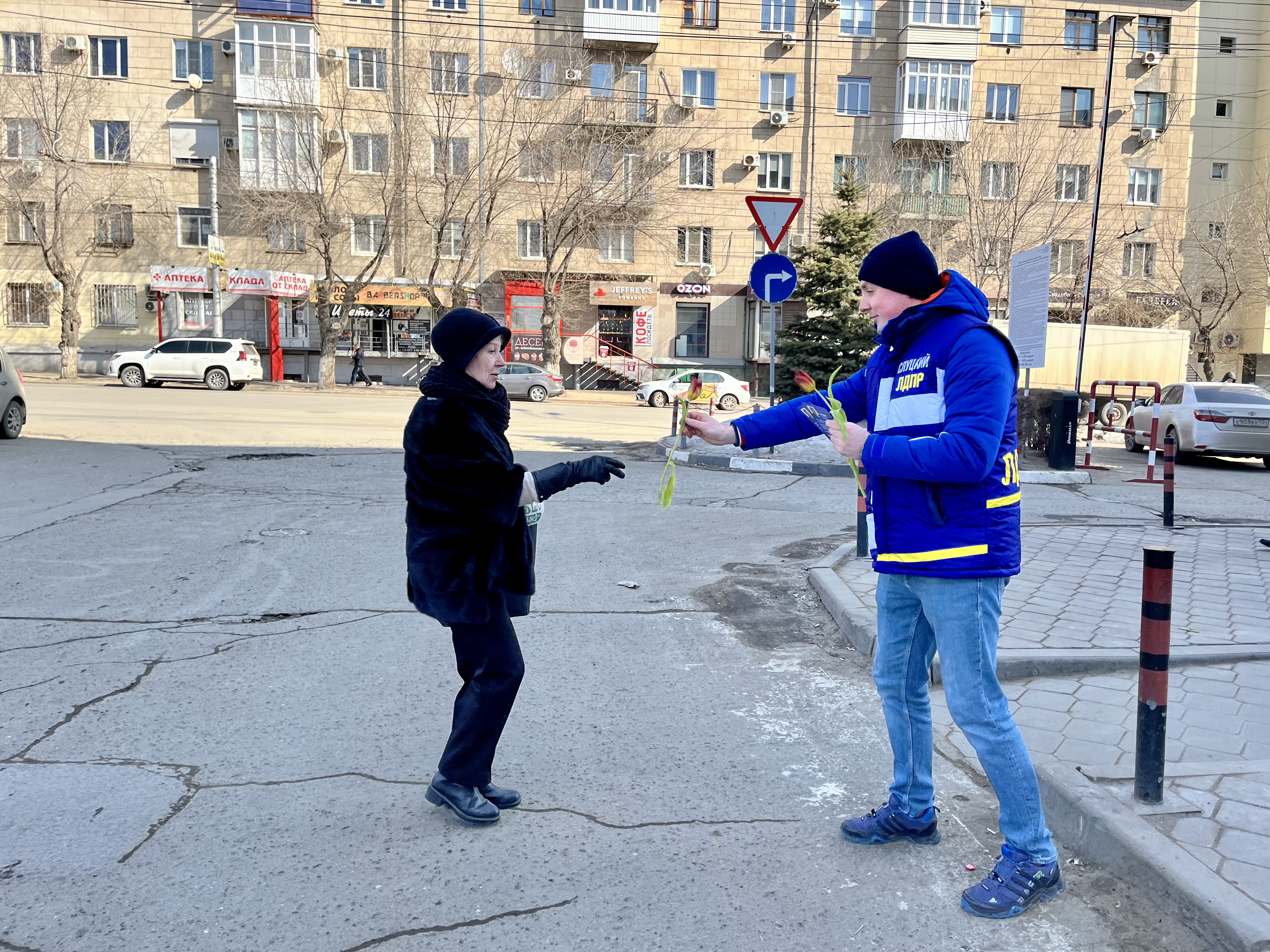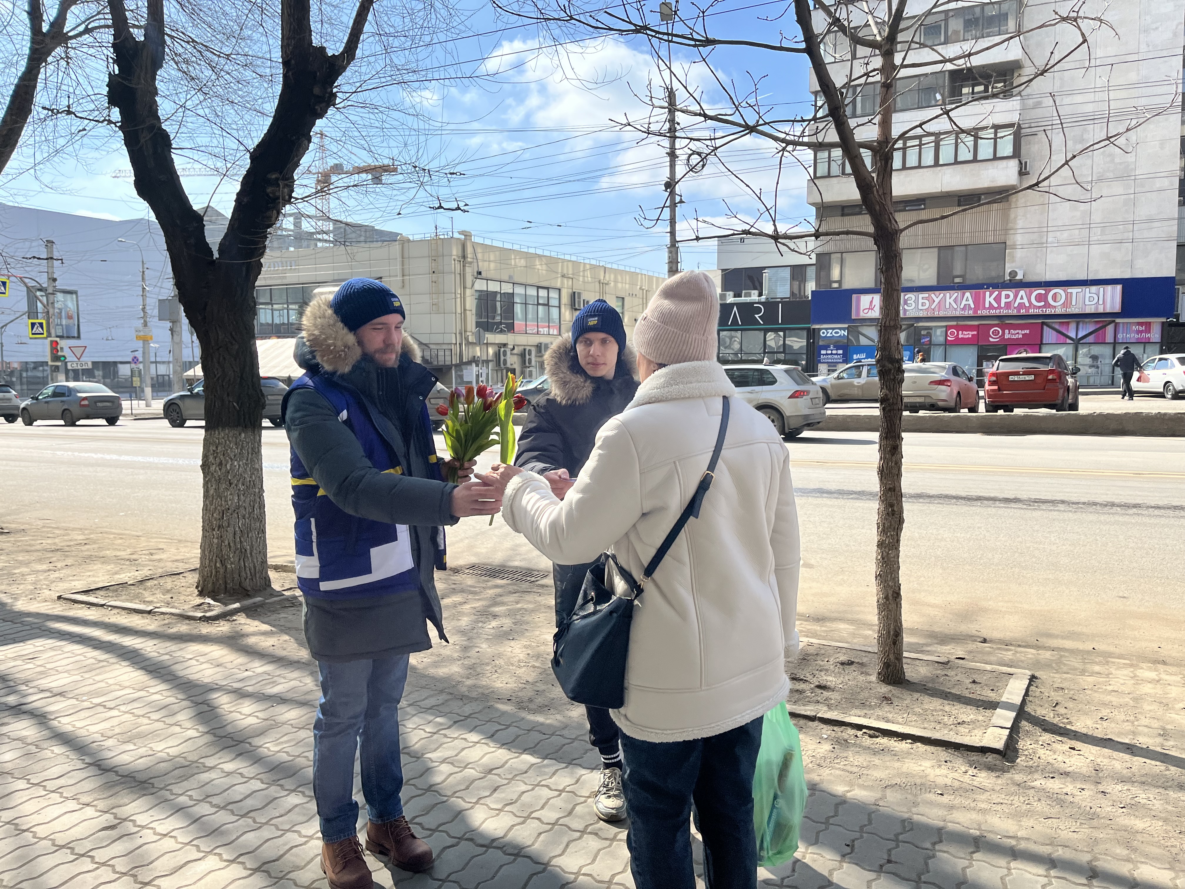 Депутаты ЛДПР в Волгоградской области дарили праздничное настроение женщинам на улицах города