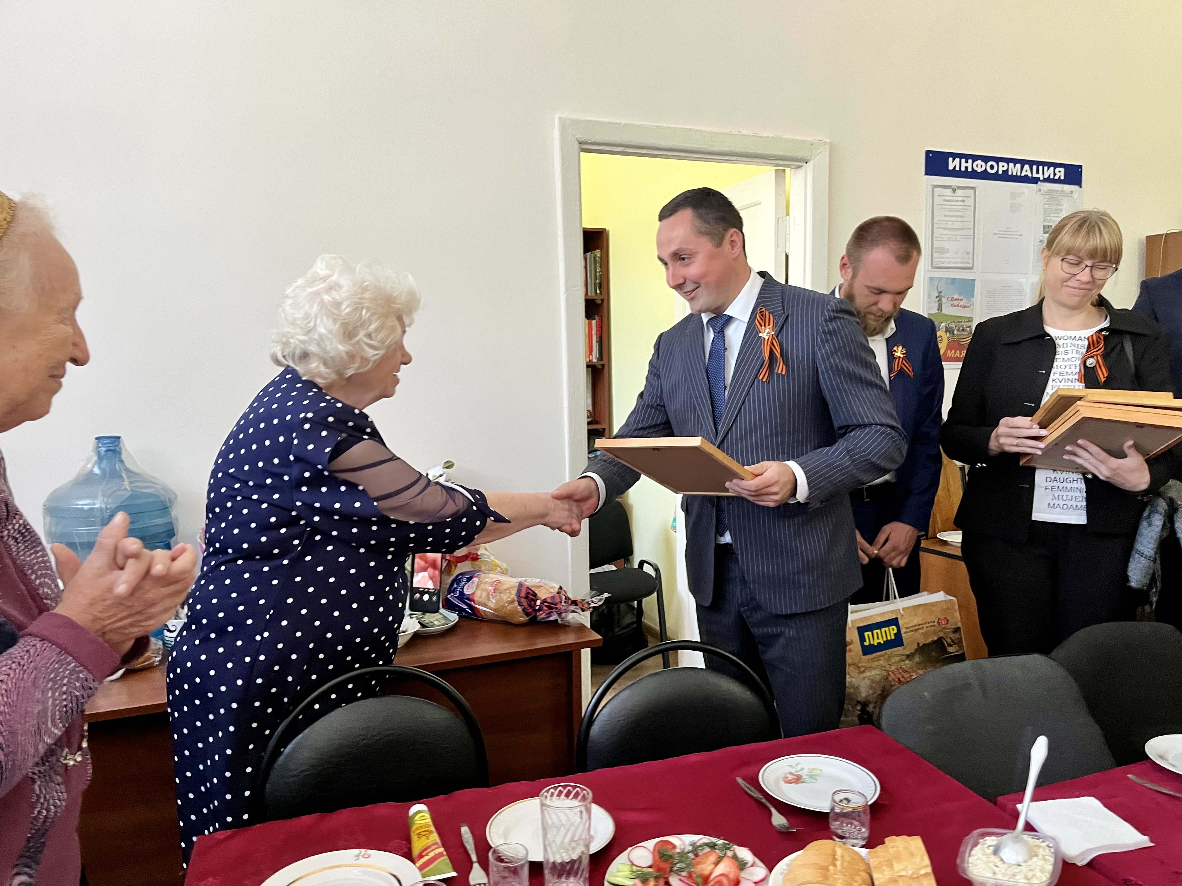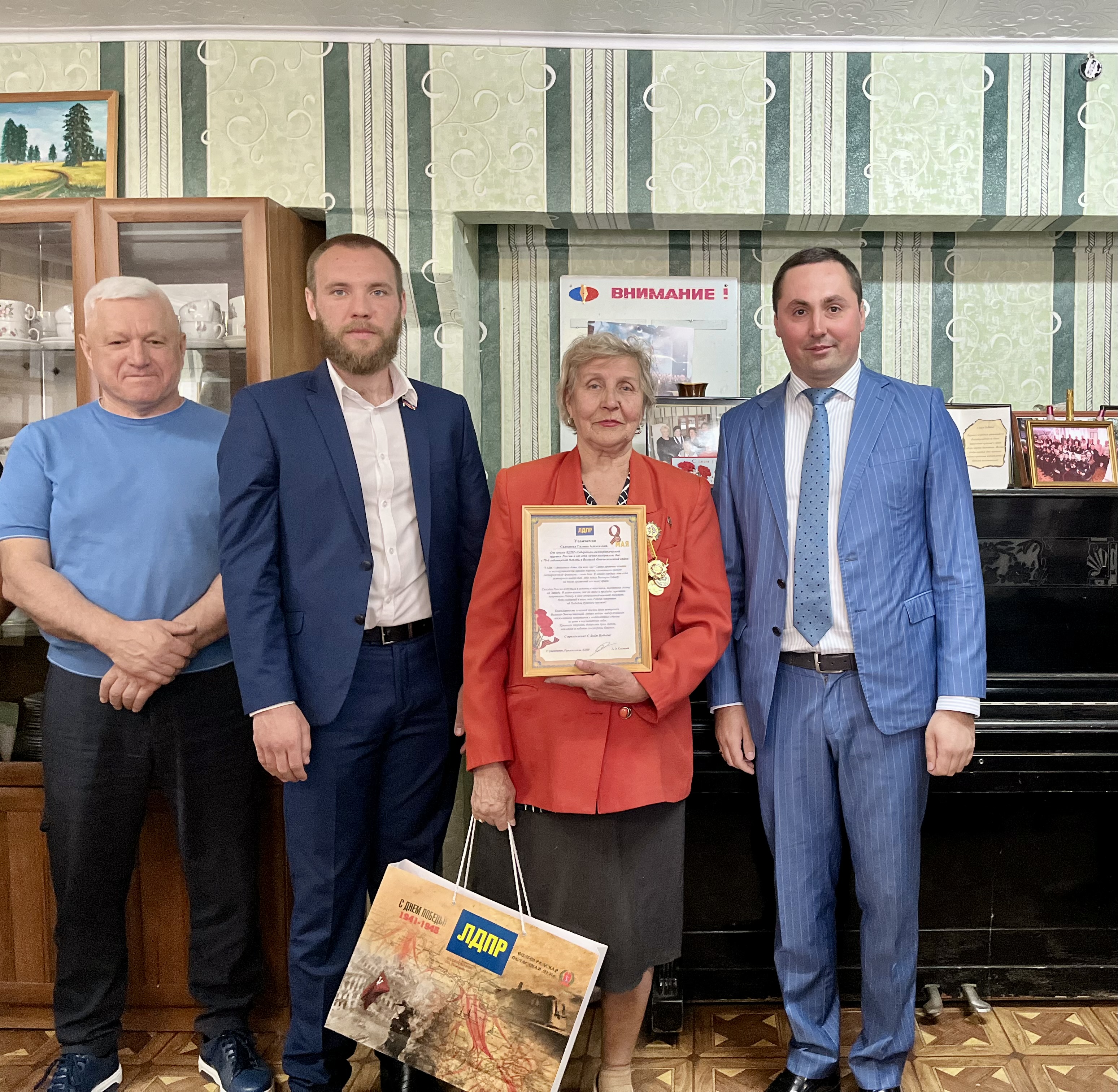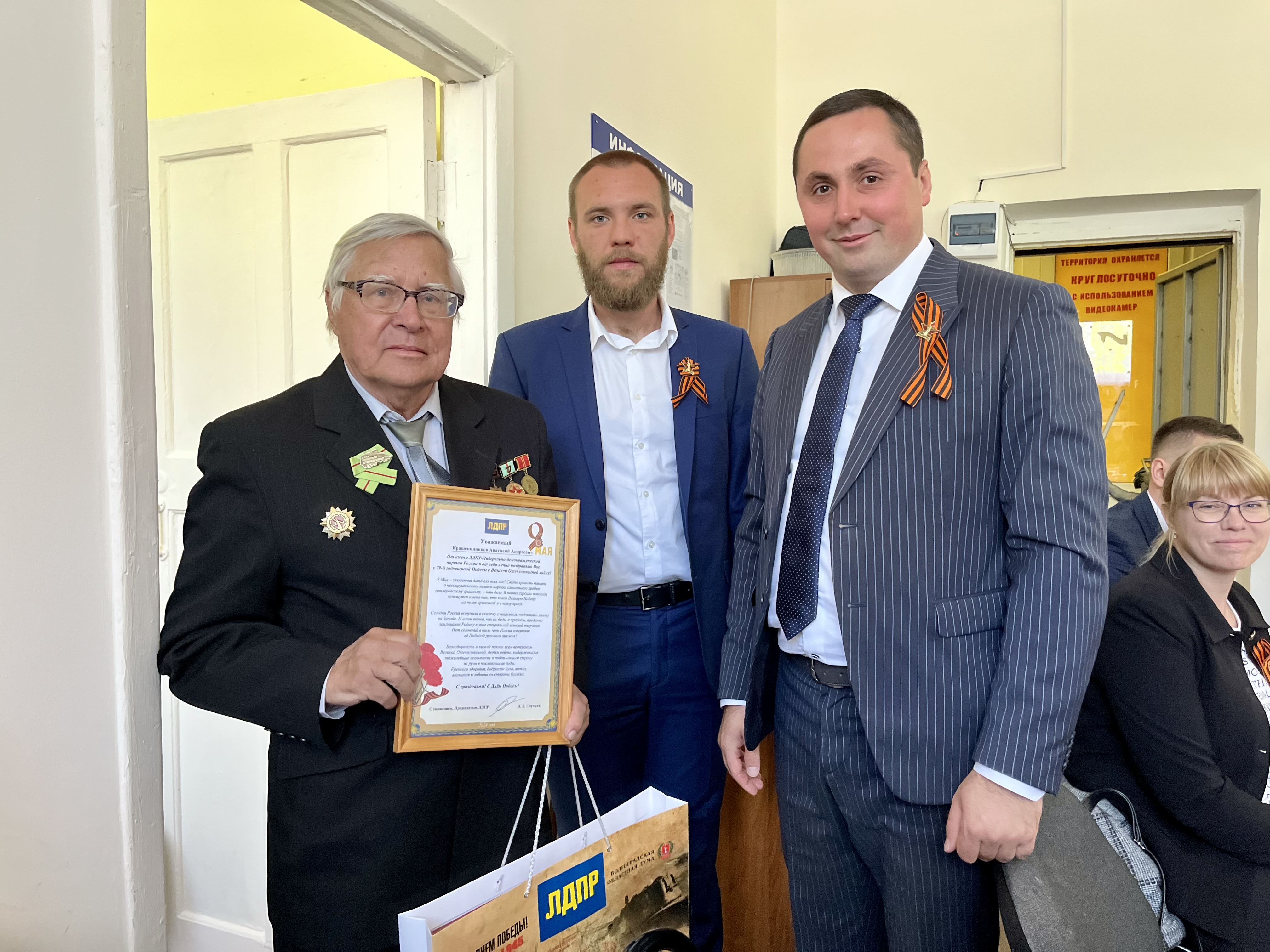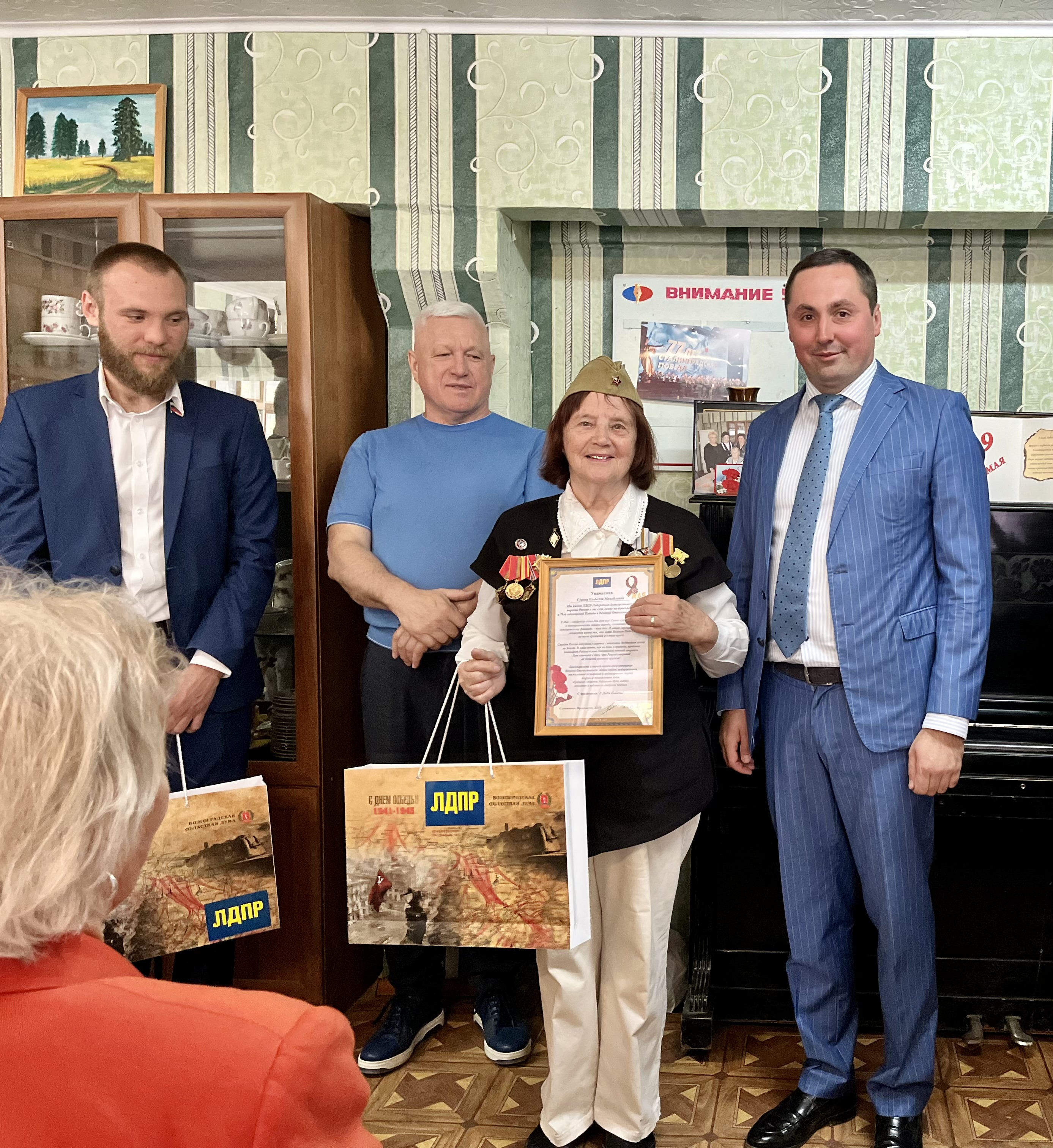 Депутаты поздравили ветеранов, торжественно вручили благодарственные письма от лица Леонида Эдуардовича Слуцкого и подарили ценные подарки от Волгоградской областной Думы.