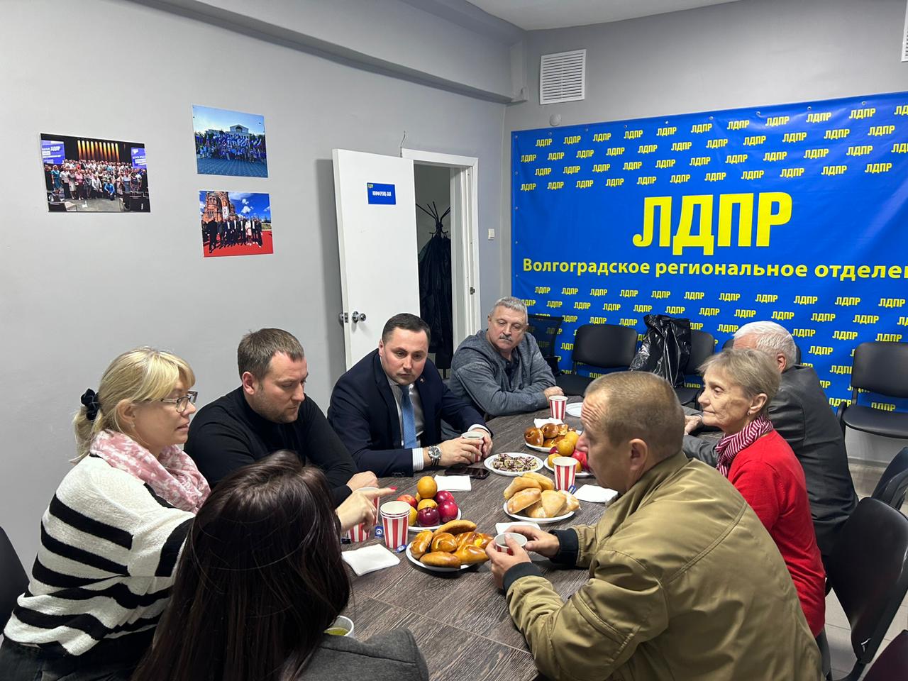 После посещения мемориала Евгений Дмитриевич Агапов и Татьяна Николаевна Калинина также побывали в Волгоградском региональном отделении ЛДПР. Гостям провели экскурсию по офису, рассказали о текущей деятельности партии, а координатор Волгоградского регионального отделения ЛДПР Алексей Логинов поделился небольшой историей об Основателе ЛДПР Владимире Вольфовиче Жириновском.